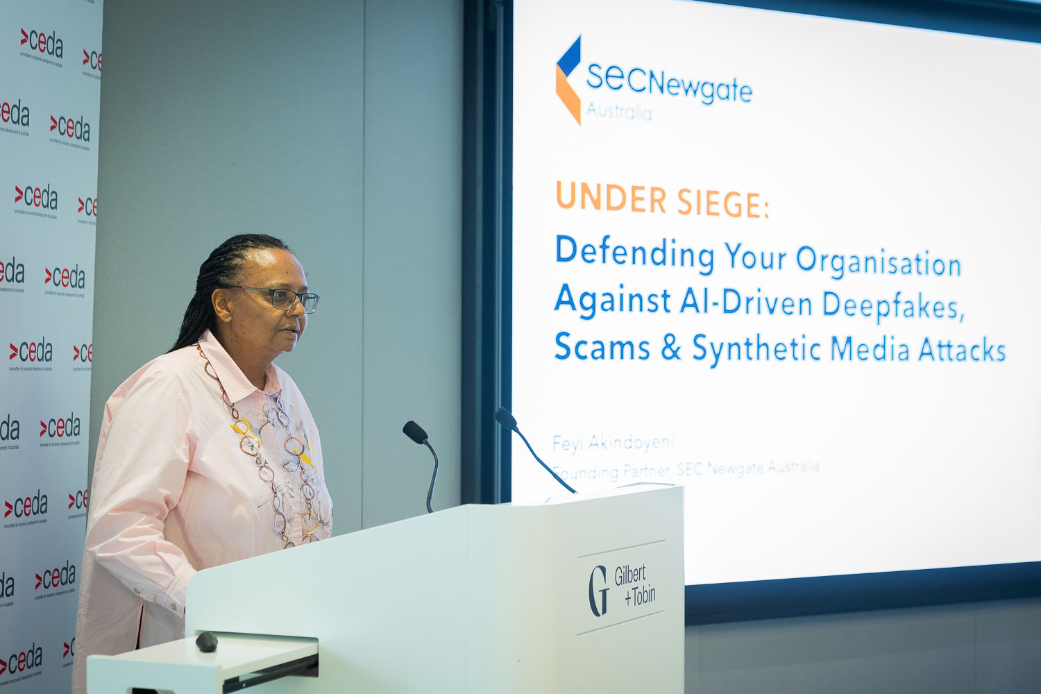 CEDA’s Scam Economy event in Sydney brought together leaders across cyber, policy and business to explore how organisations can respond to the rise of AI-driven scams and strengthen trust in a rapidly evolving digital landscape. Keynote speaker, Feyi Akindoyeni, Founding Partner, Communications SEC Newgate Australia, shared frontline insights into managing AI-driven risks and protecting organisational reputation.